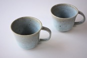 定番の松灰釉でのマグカップ。松灰釉の水色は柔らかく優しい色。