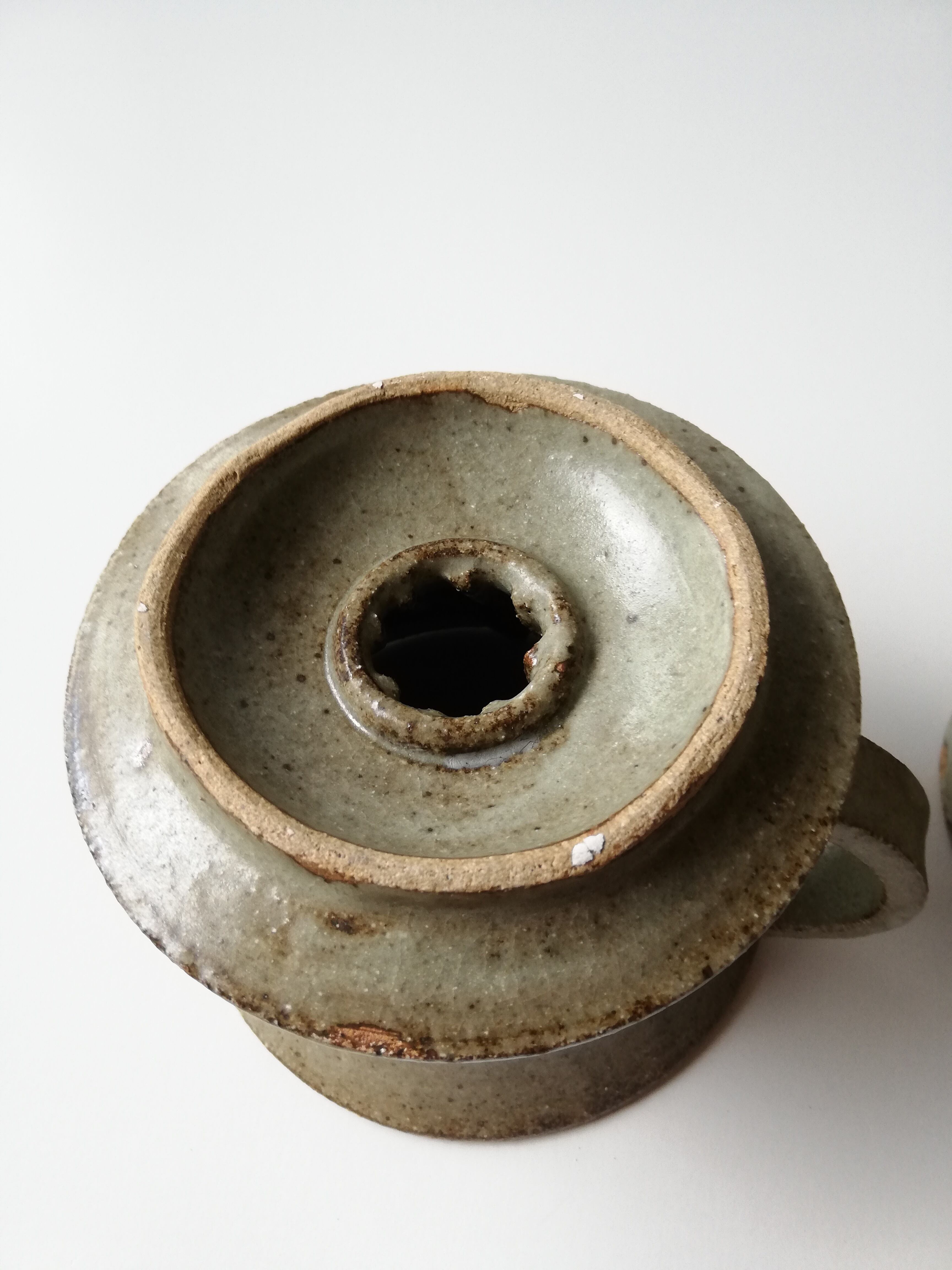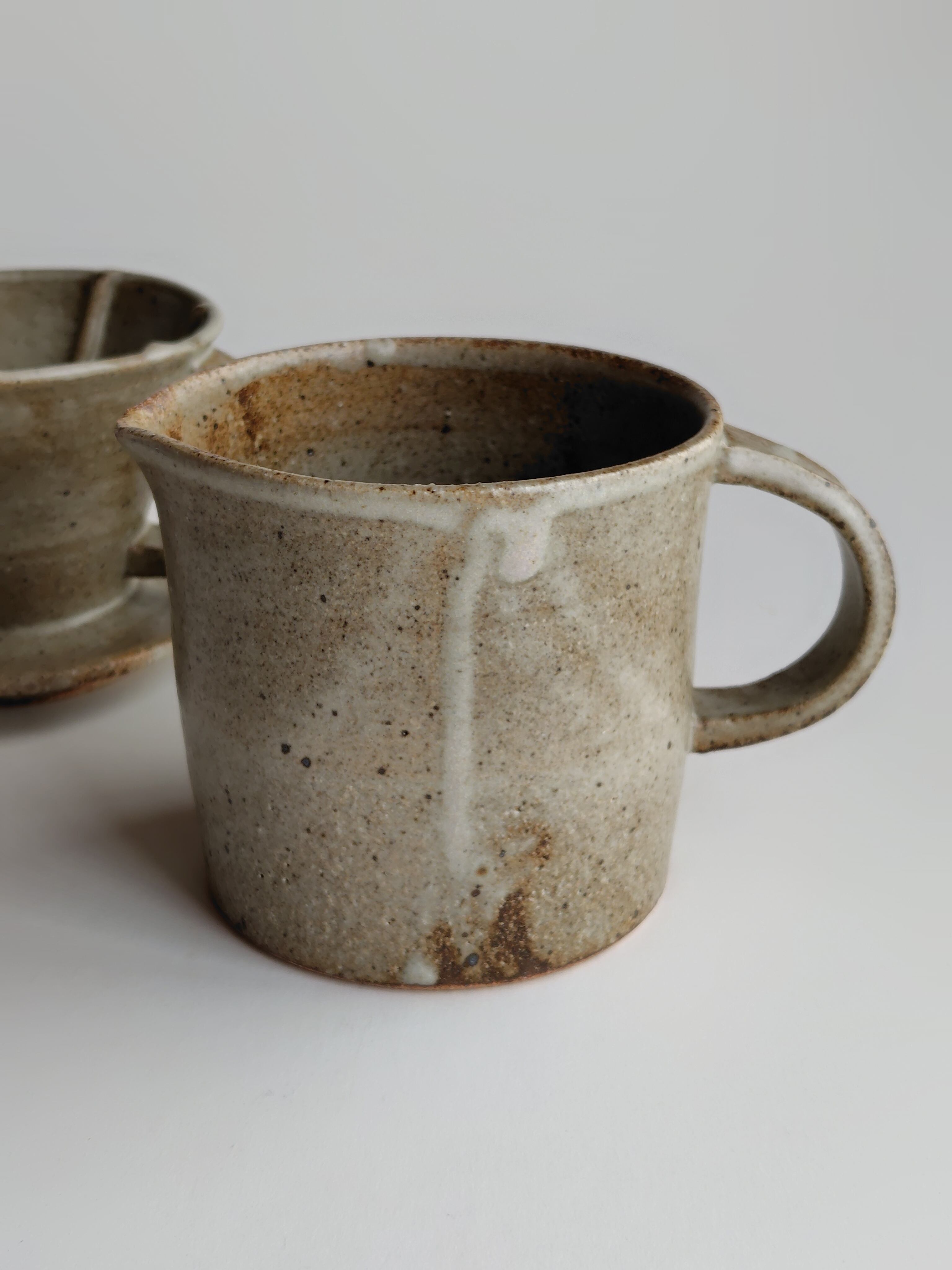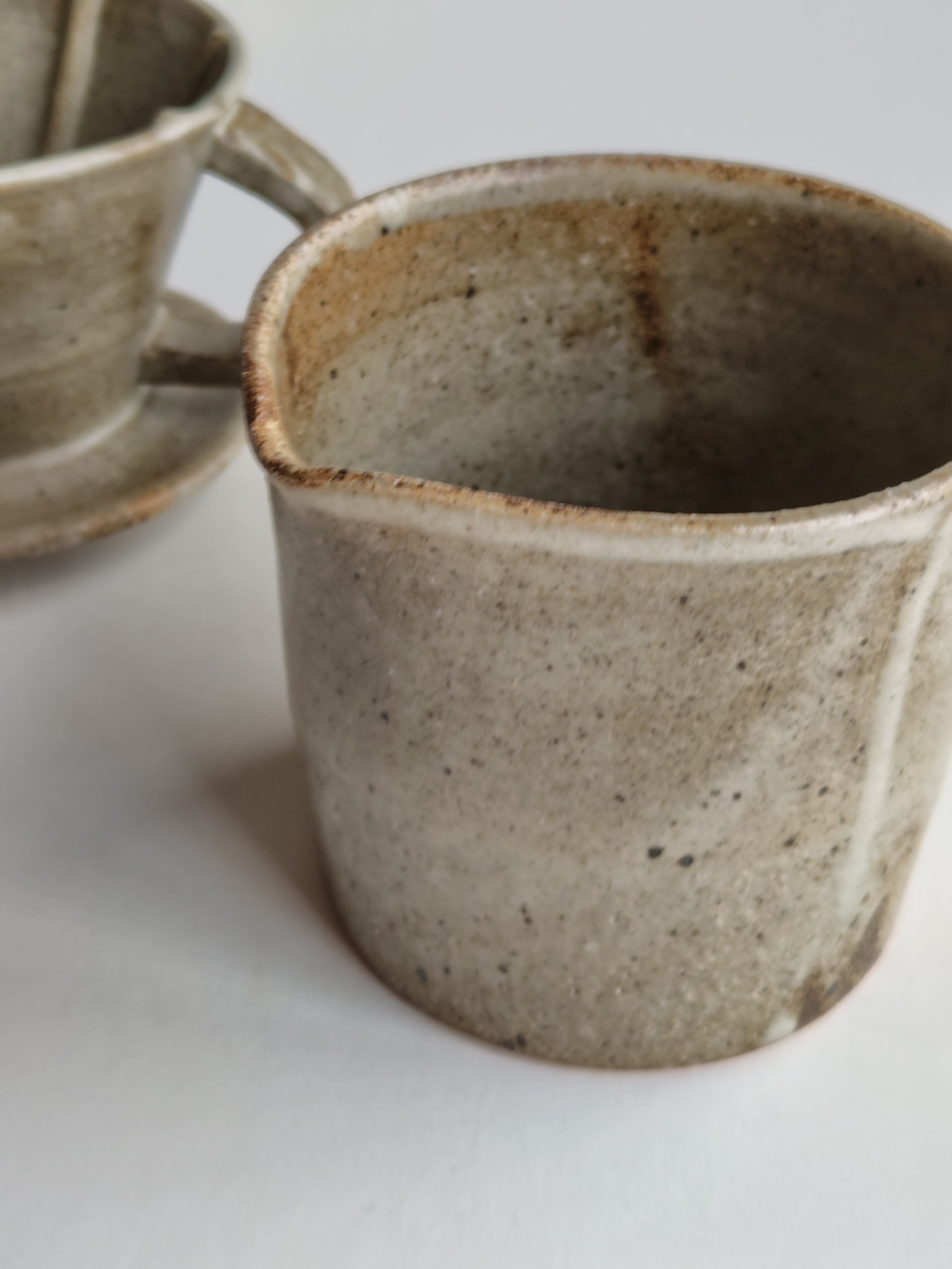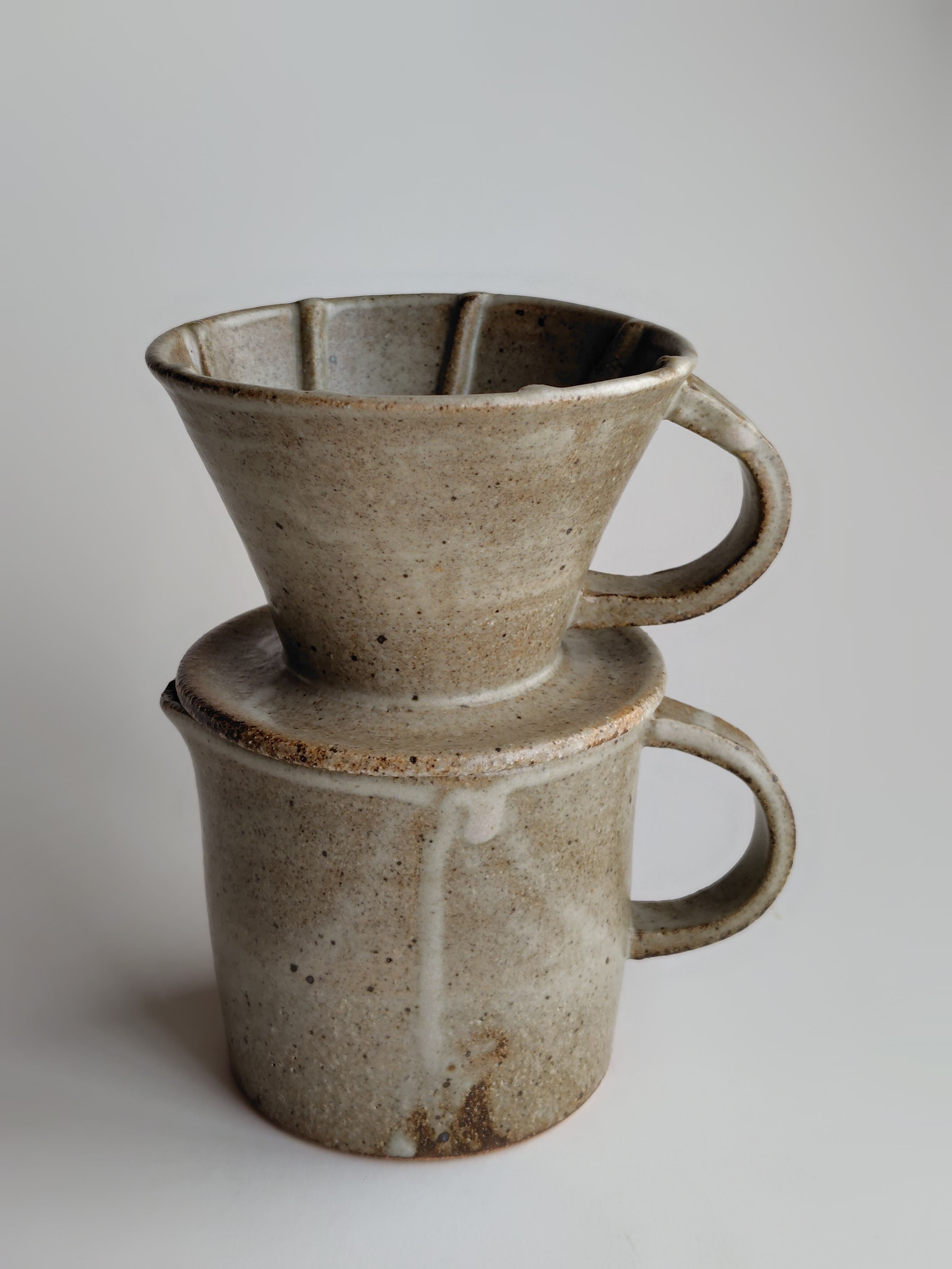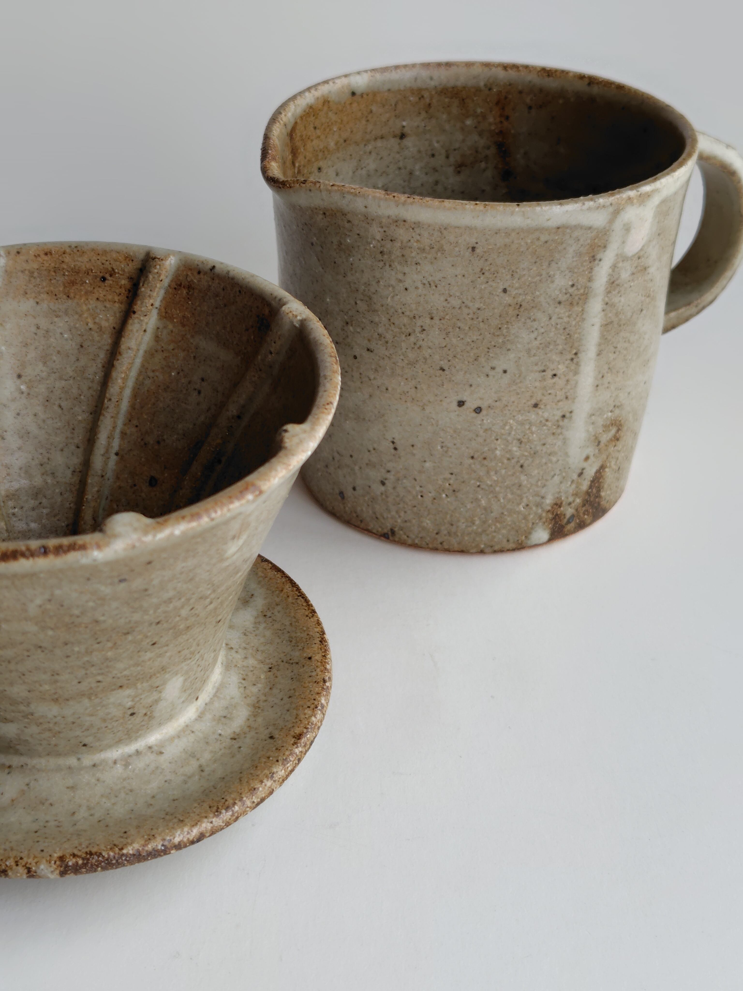 マット灰釉のコーヒードリッパーとピッチャーセット2杯分。